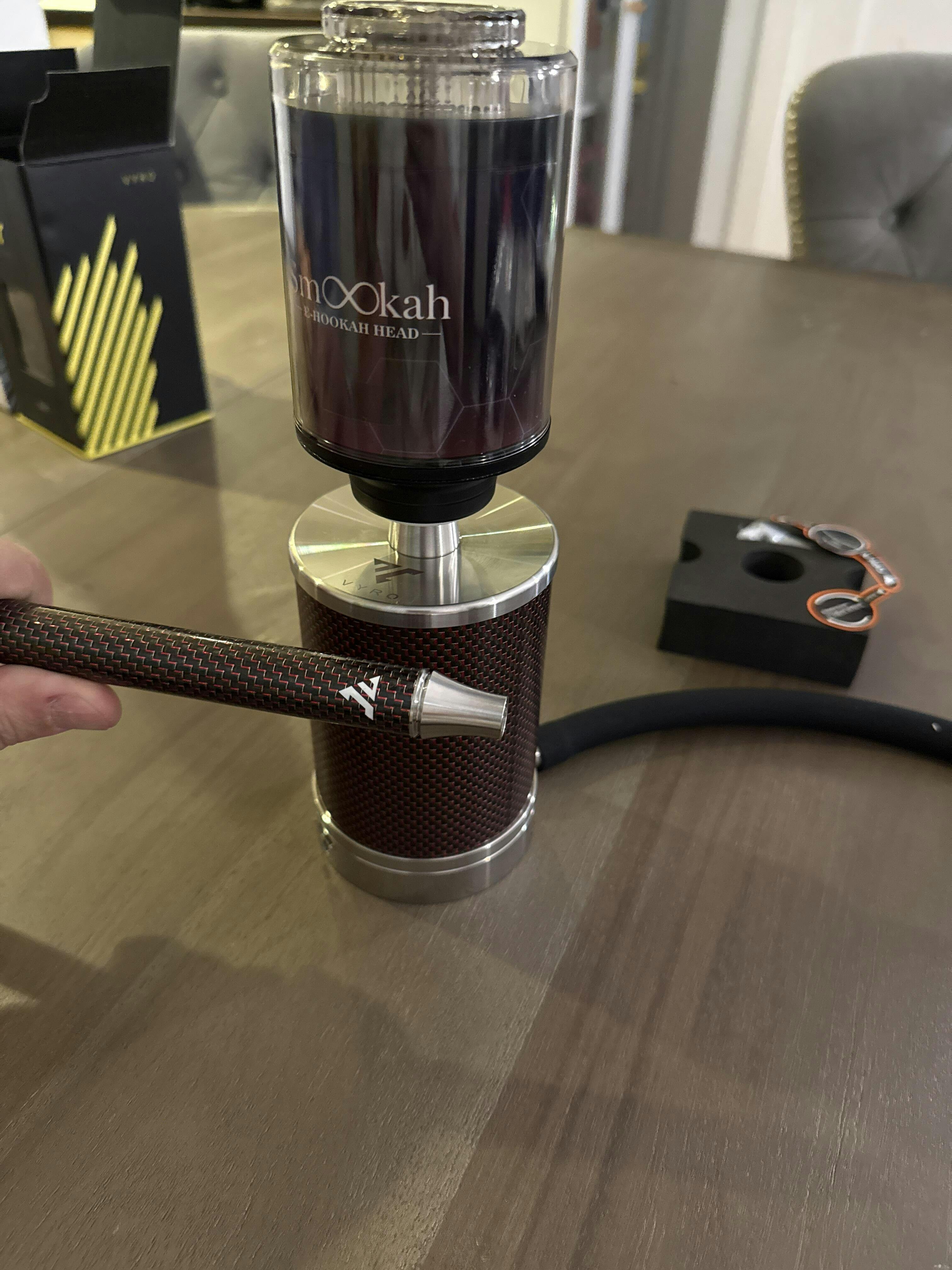 The VYRO - One is the perfect travel hookah on the go and is made of V2A stainless steel and real carbon. The VYRO - One has been designed, developed and tested since the summer of 2018 by AEON.