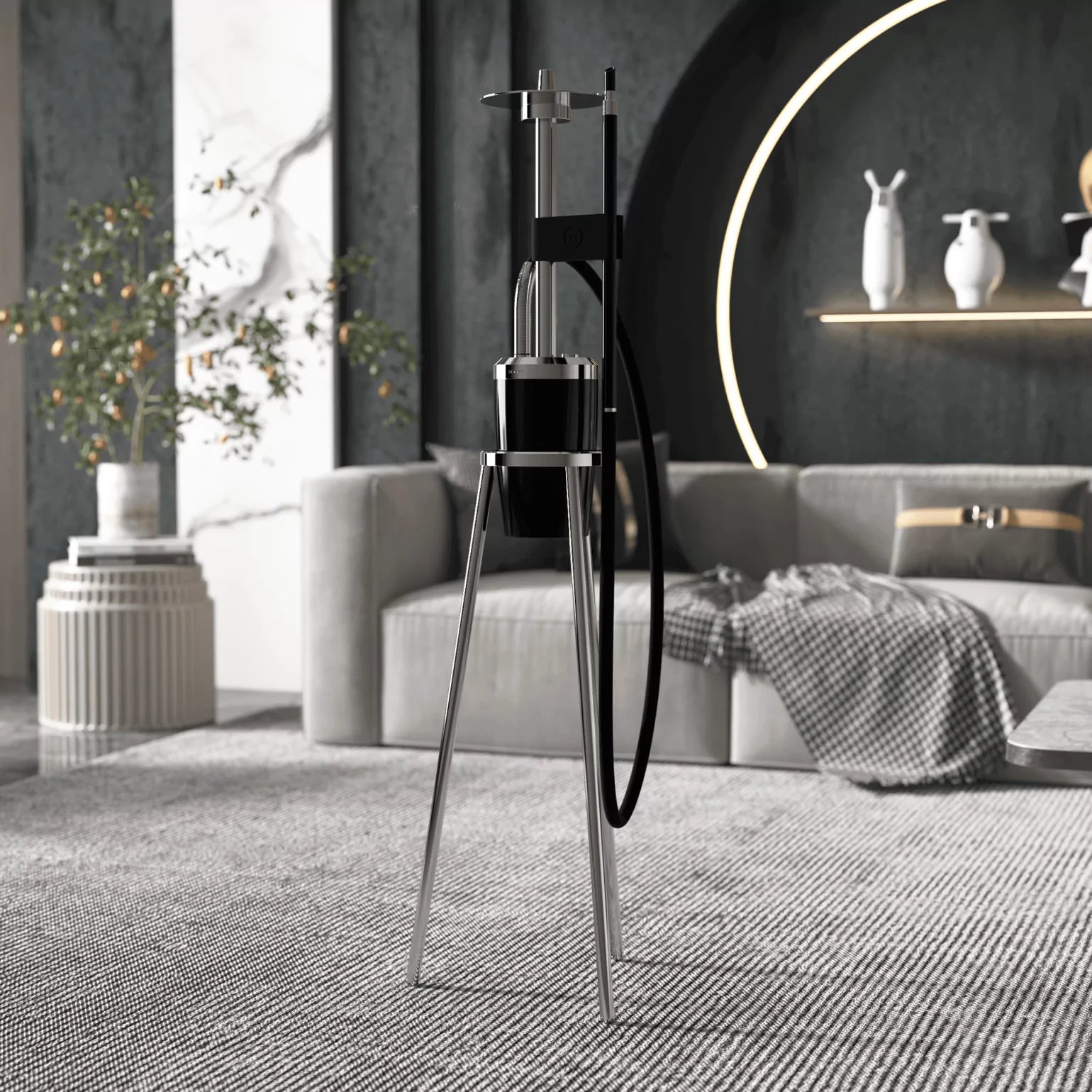The Hooky Steel stands out with its sleek appearance and unique design, making it more than just a hookah—it's an exceptional product. This object fits seamlessly into any space, adding a refined and contemporary touch. With the Hooky Steel, aesthetics and functionality combine for an extraordinary hookah experience.